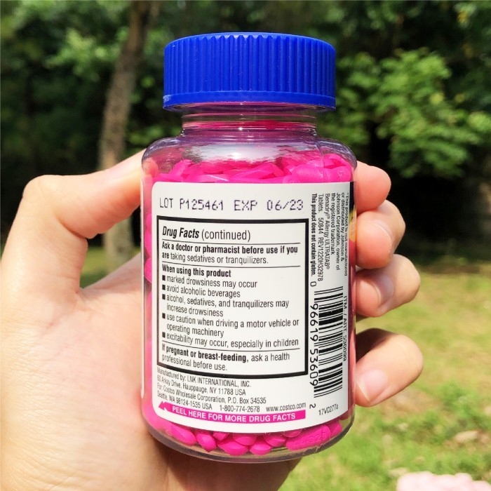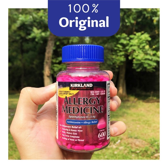Kirkland Allergy Medicine merupakan obat alergi yang memiliki kandungan aktif yaitu 25mg Dipenhydramine HCI yang dapat membantu untuk meredakan gejala-gejala alergi. Diphenhydramine merupakan Antihistamine yang mudah di telan di mana memiliki manfaat untuk mengurangi sementara efek histamin kimia alami dalam tubuh dan gejala-gejala yang timbul seperti demam, juga alergi di saluran pernapasan lainnya.